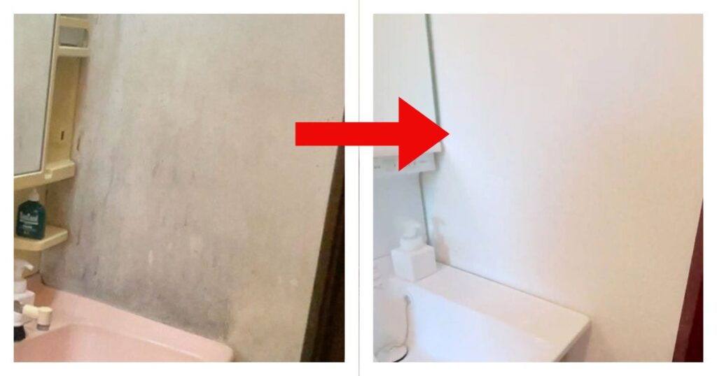 我が家も築27年。洗面台の壁はカビだらけで、正直恥ずかしくて人に見せられない状態でした。