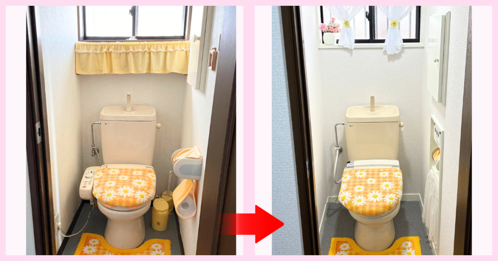 築25年の暗いトイレが激変!ダイソーカフェカーテン×突っ張り棒で明るく運気アップ