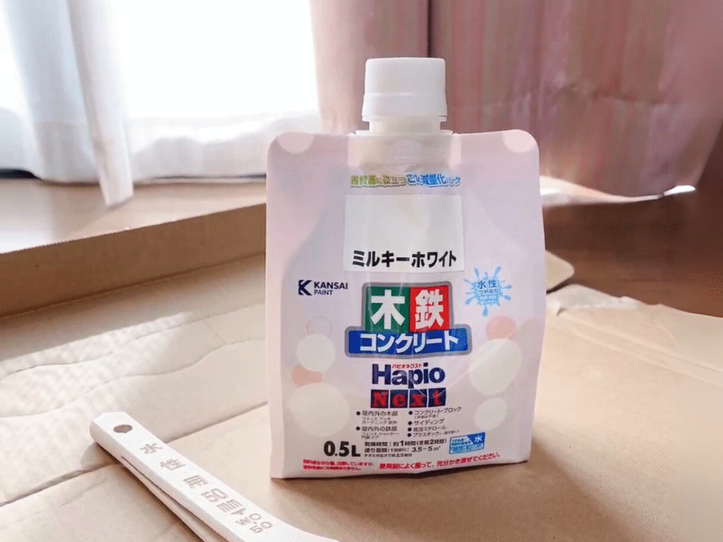 このペンキは、まるでペットボトルのようにフタが回せるパック詰め。ドライバーでこじ開ける必要もなく、開け閉めが簡単で、汚れたらそのまま小さく捨てられるんです。50代の主婦にとって、こんなに使いやすいペンキはありませんでした!